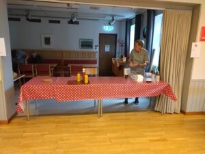 Besökarna bjöds på varm korv med bröd samt kaffe med kaka.