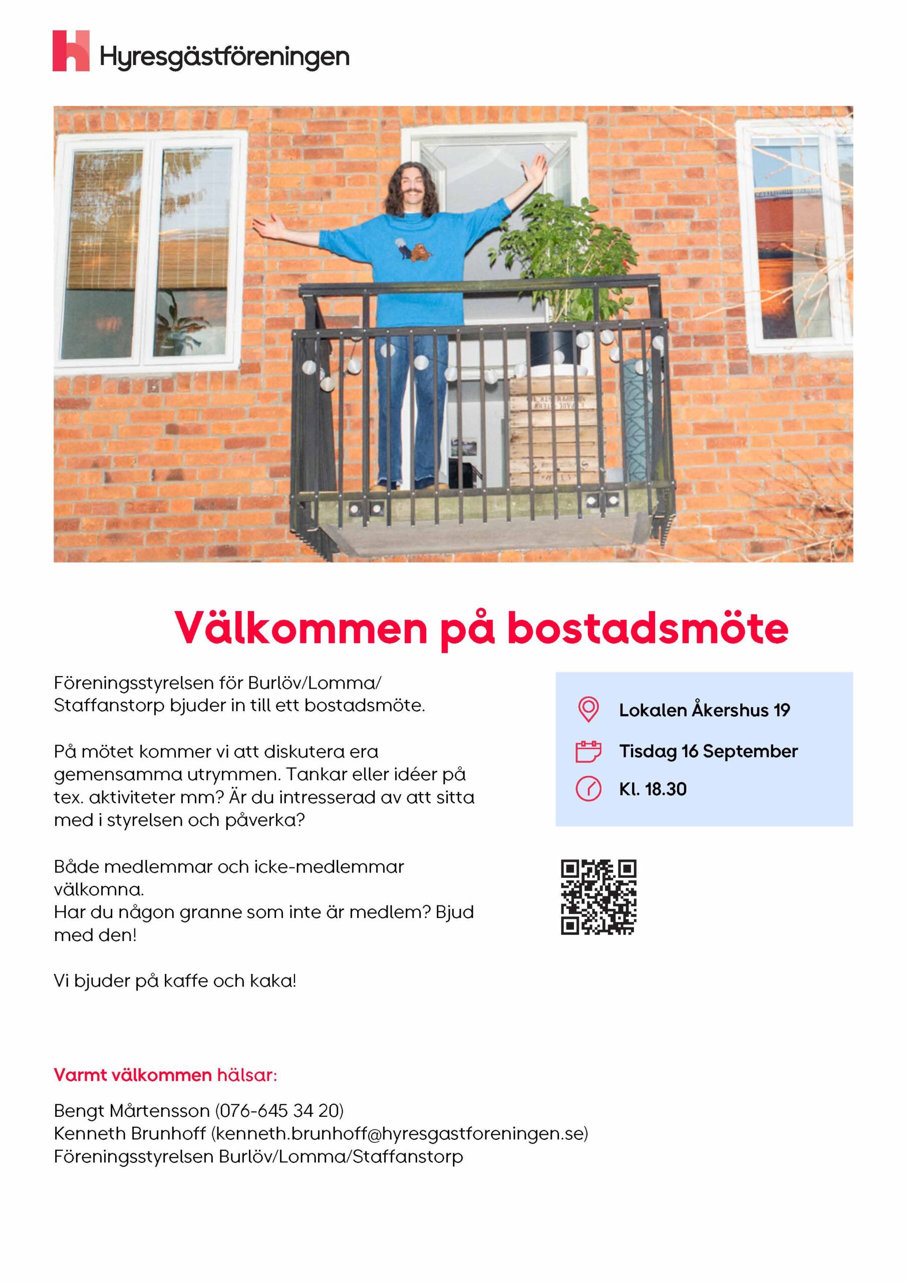 Föreningsstyrelsen för Burlöv/Lomma/Staffanstorp bjuder härmed in till ett bostadsmöte.