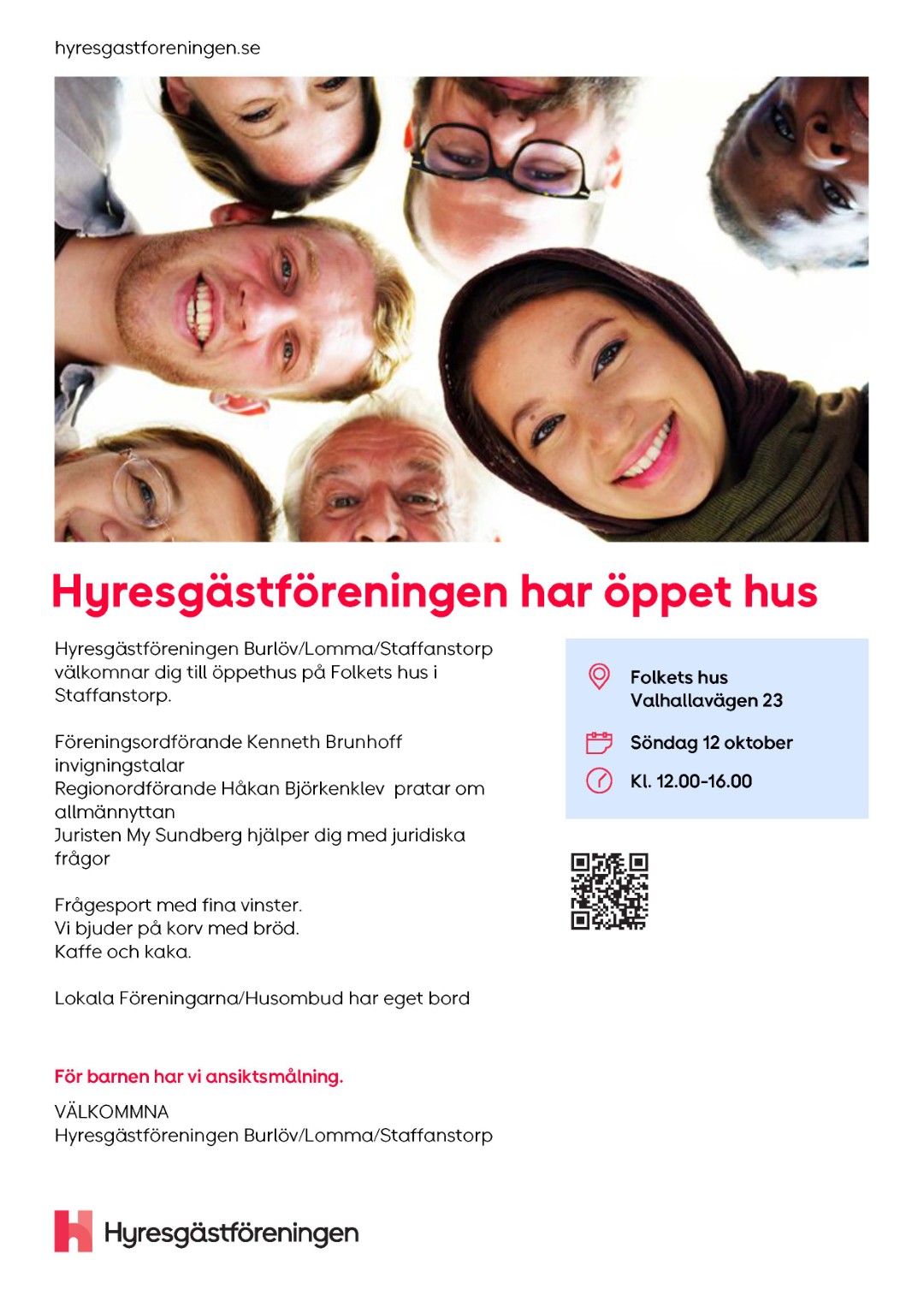 Hyresgästföreningen Burlöv/Lomma/Staffanstorp välkomnar dig till öppethus på Folkets hus i Staffanstorp.